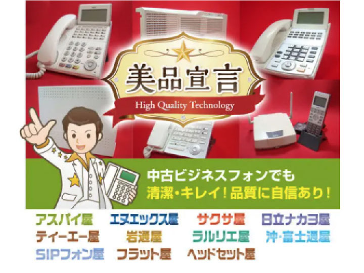 中古ビジネスホン販売・工事・保守対応も可能です。業界No1のポータルサイトメーカーから商品の仕入れを行い、新品に近いクオリティで販売・施工を行います。